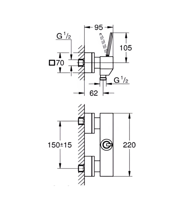 Межцентровое расстояние подключения 150+15 мм