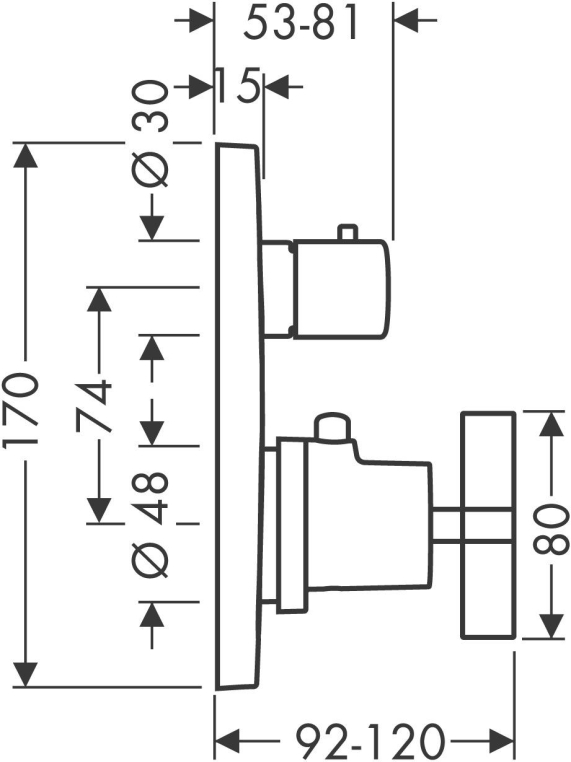 Термостат с запорным вентилем, с крестовой рукояткой, внешняя часть.