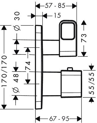 Термостат с запорным вентилем, внешняя часть.
