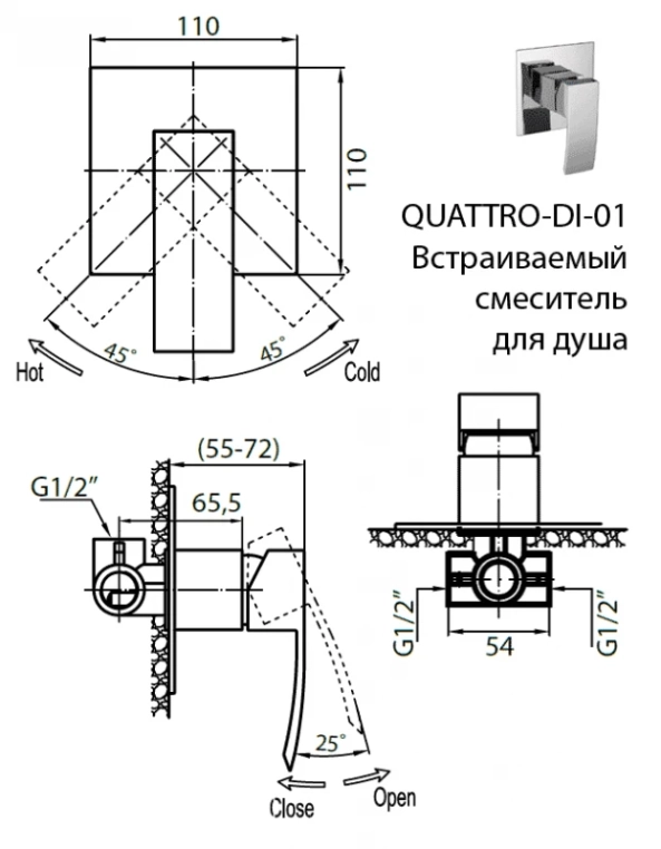 Смеситель встраиваемый для душа Cezares QUATTRO-C-DI-01 хром