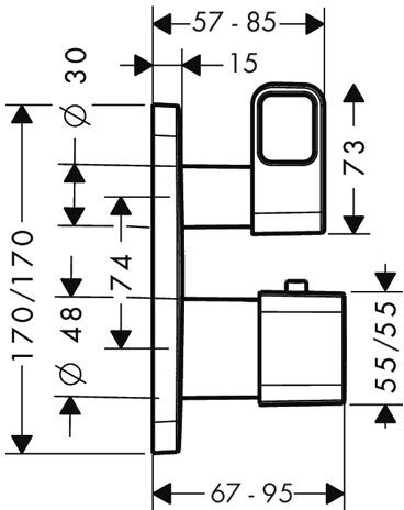 Термостат с запорным/переключающим вентилем, внешняя часть.