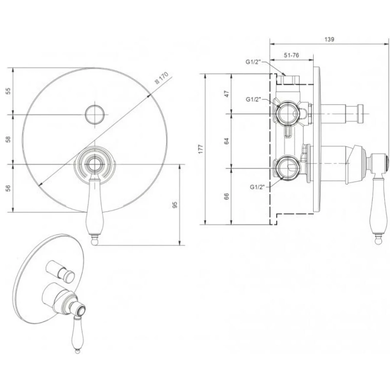 Встраиваемый смеситель для душа с переключателем Cezares Aphrodite APHRODITE-VDIM2-02-Bi бронза