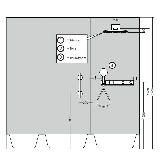 Термостат поставляется с кнопками ручной душ, Waterfall, Rain large, Mono