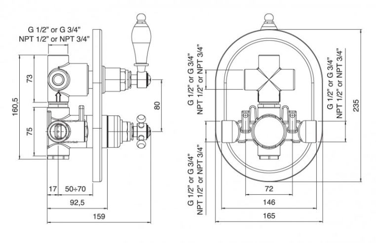 Смеситель термостатический для душа Cezares Vintage VINTAGE-VDIM2-T-02-Sw бронза