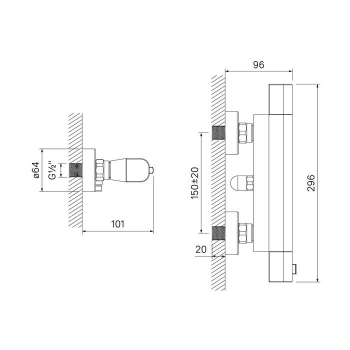 Смеситель для душа с термостатом универсальный, подходит для любого расположения труб горячей и холодной воды, латунь, увеличенное никель-хромовое покрытие, термостатический картридж Sedal.