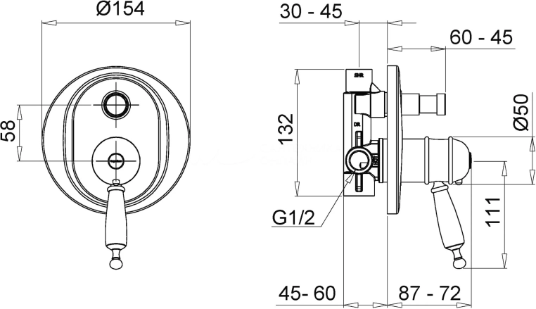 Смеситель скрытого монтажа, термостат 2-х позиционный с девиатором Migliore Oxford