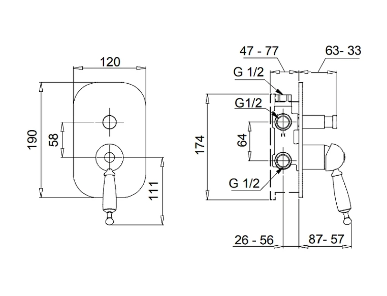 Смеситель скрытого монтажа 2-позиционный с девиатором Migliore Oxford