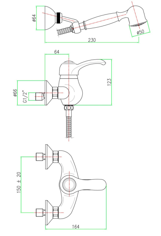 Смеситель для душа Webert Armony AU870101017, хром-золото