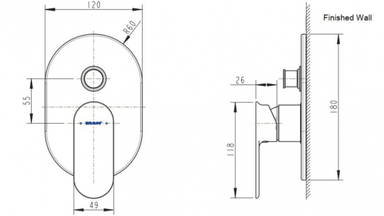 Встраиваемый смеситель 3-функц. Bravat Gina PB865104CP-2-ENG