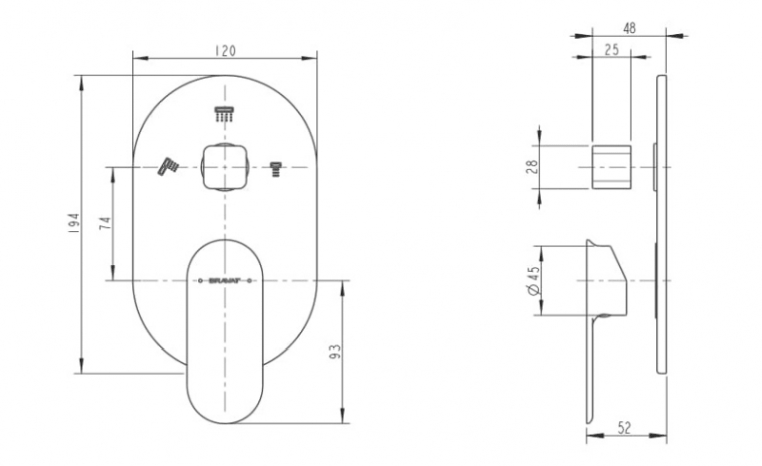 Встраиваемый смеситель 3-функц. Bravat Gina P69194C-ENG