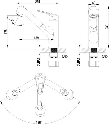 Высота излива, мм