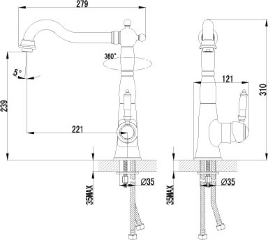 Высота излива, мм