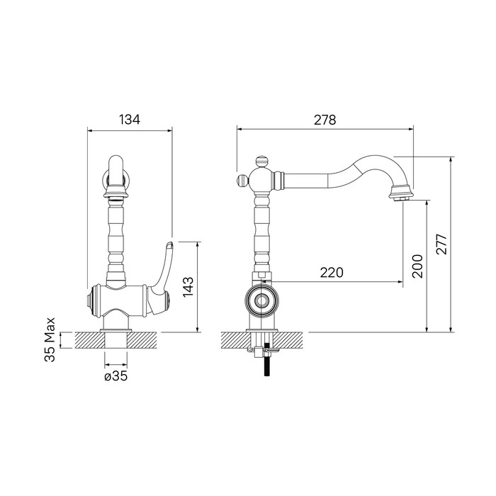 Смеситель для кухни, однозахватный, латунь, увеличенное никель-хромовое покрытие, керамический картридж Softap, силиконовый аэратор Neoperl.