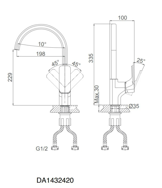 Высота до излива: 335 мм.