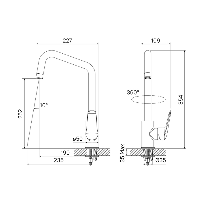 Смеситель для кухни IDDIS® изготовлен из высококачественной первичной латуни, прочной, безопасной и стойкой к коррозии. Инновационные технологии литья и обработки латуни, а также увеличенная толщина стенок смесителя обеспечивают его стойкость к перепадам давления и температур.