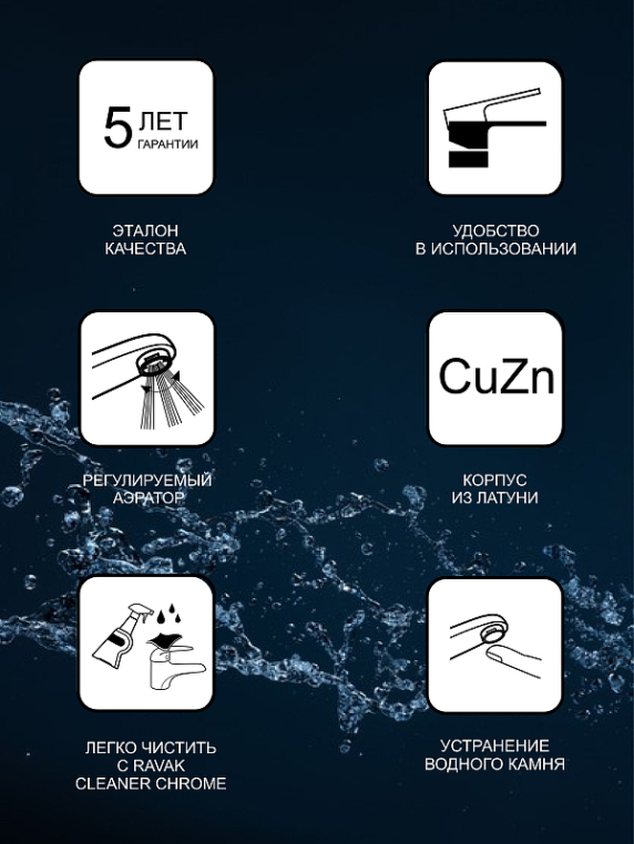 Оснащение: аэратор / гибкая подводка / система быстрого монтажа