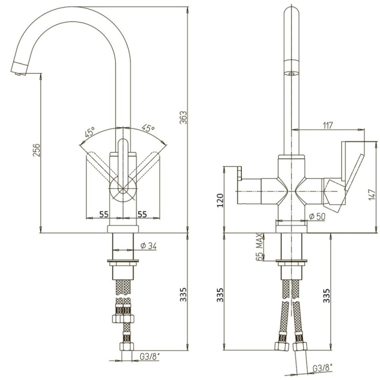 Коллекция COX выводит минимализм на новый уровень. Однорычажный смеситель идеально подходит для кухни, высокий поворотный излив позволяет менять направление потока воды, использовать глубокую посуду. В смесителе есть отдельный выход подачи питьевой воды, поэтому вам не придется предусматривать лишние отверстия на мойке для соединения фильтра и отдельного крана для очищенной воды. Тонкая эргономичная ручка в сочетании с традиционной формой корпуса сделает интерьер стильным, не перегружая его деталями. Дизайн смесителя будет органично смотреться в стилях хай-тек, модерн, классика или добавит завершающий штрих в минималистичный интерьер.