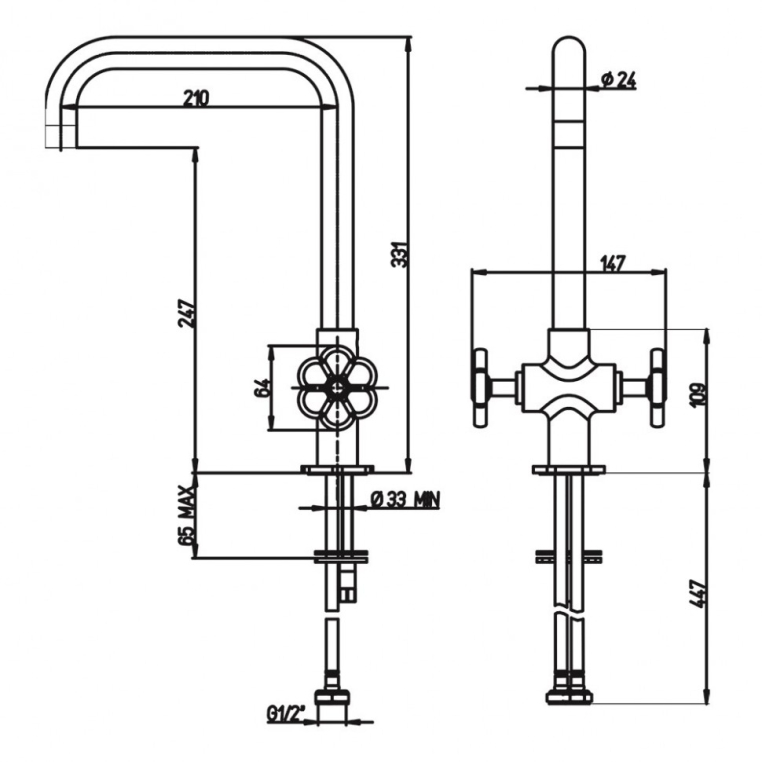 Экспериментируем на кухни не только с блюдами! Яркая форма коллекции смесителей GARAGE раскроет пространство по-новому. Обратите внимание на индустриальные вентили. Высокий корпус и поворотный излив делают двухвентильный смеситель незаменимым для кухни, позволяя наполнить кастрюлю или вазу водой, помыть посуду. Контраст традиционной формы излива и необычных вентилей делает функциональность небанальной и привлекательной. Смеситель сможет стать украшением дизайна в стиле лофт.