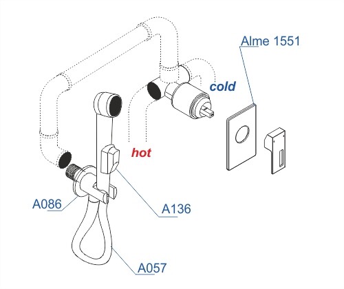 A15157 Встраиваемый комплект для биде со шлангом 120 см