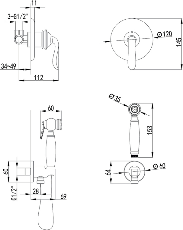 - Аксессуары в комплекте: лейка для биде с нажимным механизмом, шланг 1,5 м