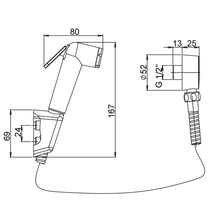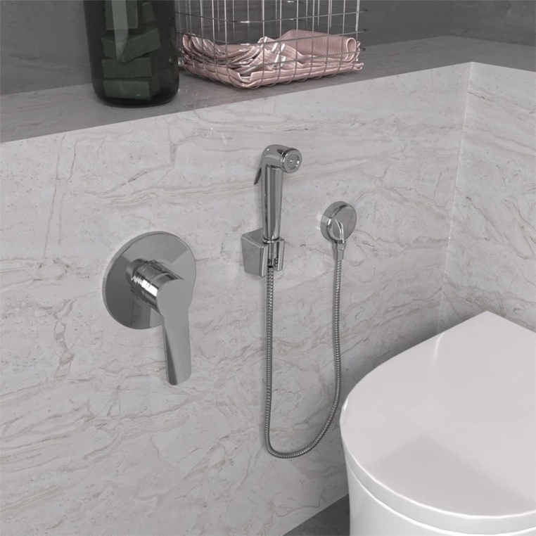 Гигиенический душ итальянской фабрики PAINI - современное техническое решение для организации санузла. Его конструкция включает душевой шланг и лейку, которые крепятся и подключаются рядом с унитазом.