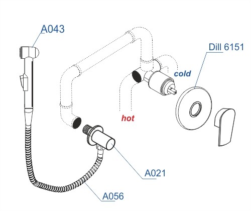 A06156 Встраиваемый комплект для биде со шлангом 100 см