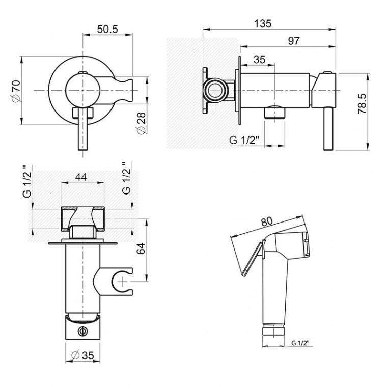 Гигиенический душ со смесителем Paini Imola 53CR442RRU_ABS (53CR442RRUABS)- современное решение для организации санузла.