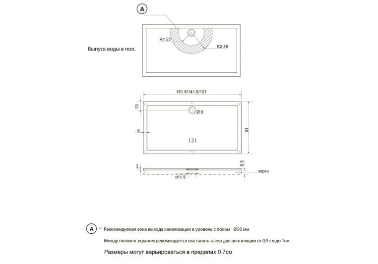 • поддон имеет низкую высоту всего 3 см, что позволяет его установить непосредственно на пол