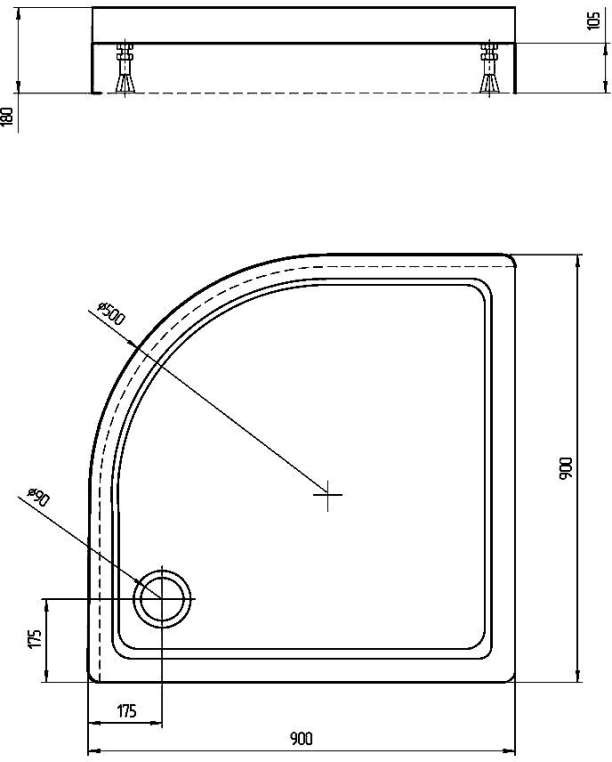 высота поддона 7,5 см, макс. высота с ножками 18 см