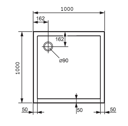 диаметр сливного отверстия соответствует Евро-стандарту для плоских поддонов (диаметр 90 мм)