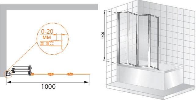 Душевая шторка на ванну Cezares PRATICO-V-4-100/140-C-Cr