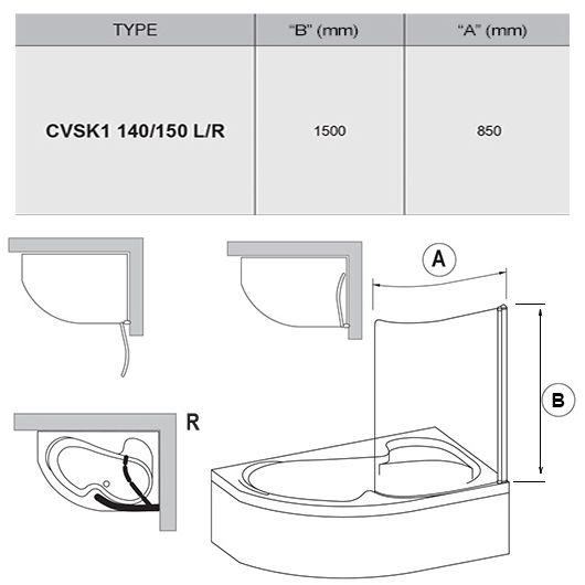 Шторка устанавливается на правые варианты ванн Rosa I, Rosa II и Rosa 95 шириной 140 см и Rosa I, Rosa II и Rosa 95 шириной 150 см.