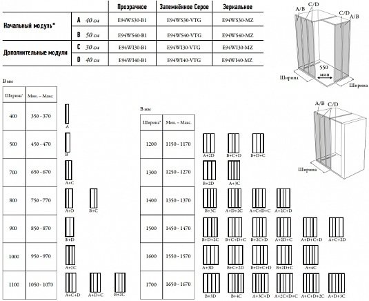 Составные душевые уголки