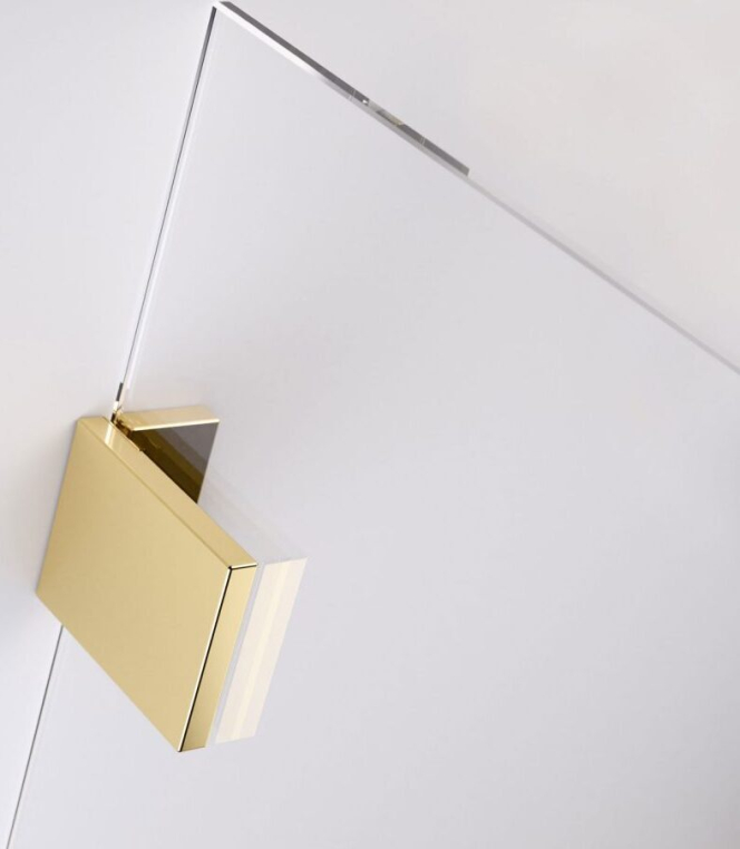 Essenza Pro — коллекция кабин разных форм дверей и шторок в которых стационанрое стекло закреплено к стене с помощью кронштейна а не профиля. Допустимы два варианта монтажа: с уплотнительным профилем или без него. Створка двери подвешена на латунных петлях и открывается только наружу.