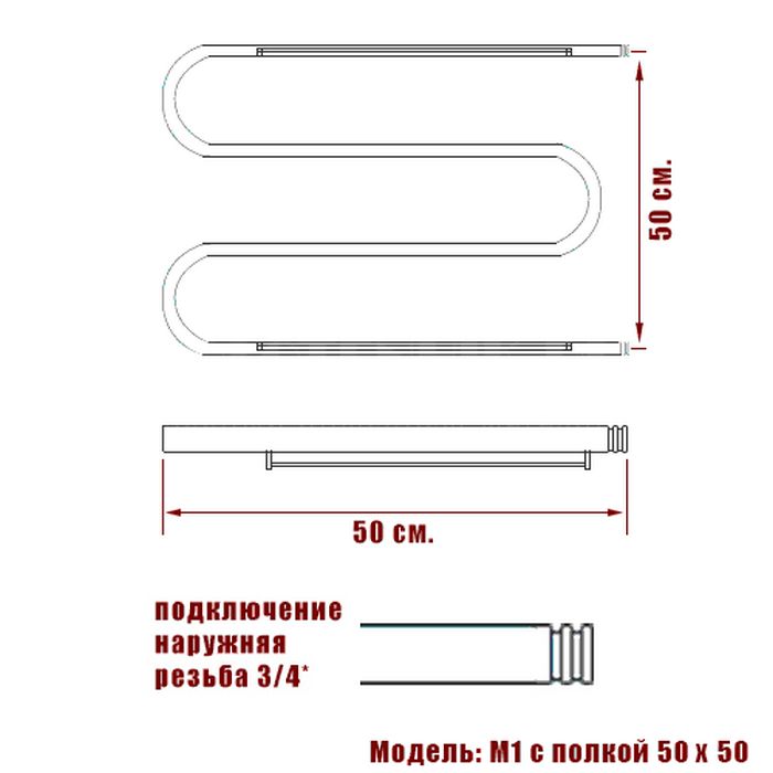 Полотенцесушитель водяной Ника SIMPLE 50x53 М 3/4 50/50 с полкой хром