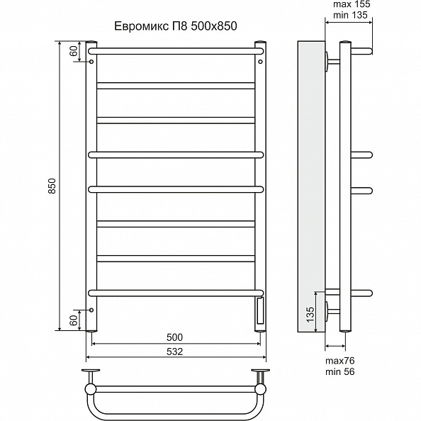 Электрический полотенцесушитель Terminus Евромикс П8 500x850 ТЭН Пр. (4660059580180)