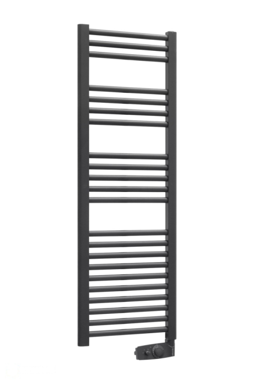 Панель управления для изменения параметров находится в нижней части устройства. В ассортименте представлены белый и черный полотенцесушители (антрацит). Модели также отличаются мощностью — 500 и 750 ватт.