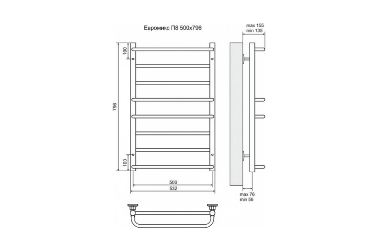 - Межосевое расстояние полотенцесушителя, мм: 500