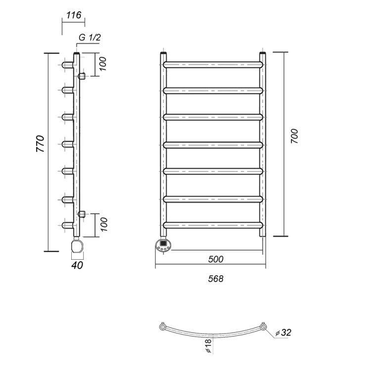 Полотенцесушитель электрический Domoterm Калипсо П7 500х700 EL Тен слева, хром