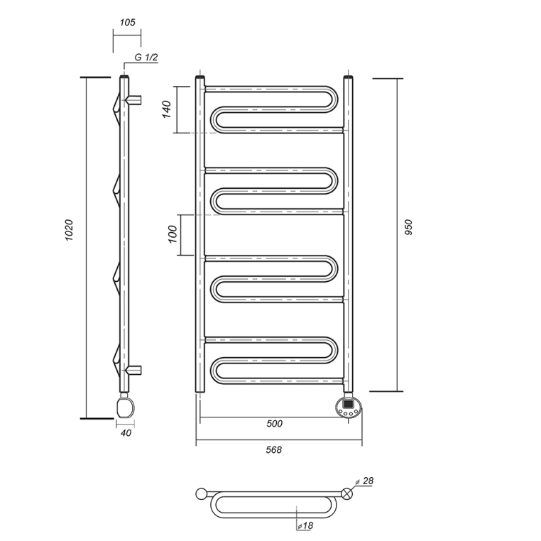 - Размеры, ВхШхГ, мм: 950х500х105