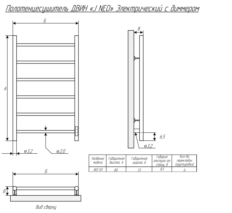 Полотенцесушитель ДВИН J neo 80/50 Электрический (1"-1/2" К диммер Чёрный матовый)