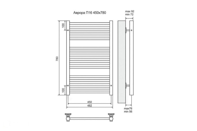 - Межосевое расстояние полотенцесушителя, мм: 450