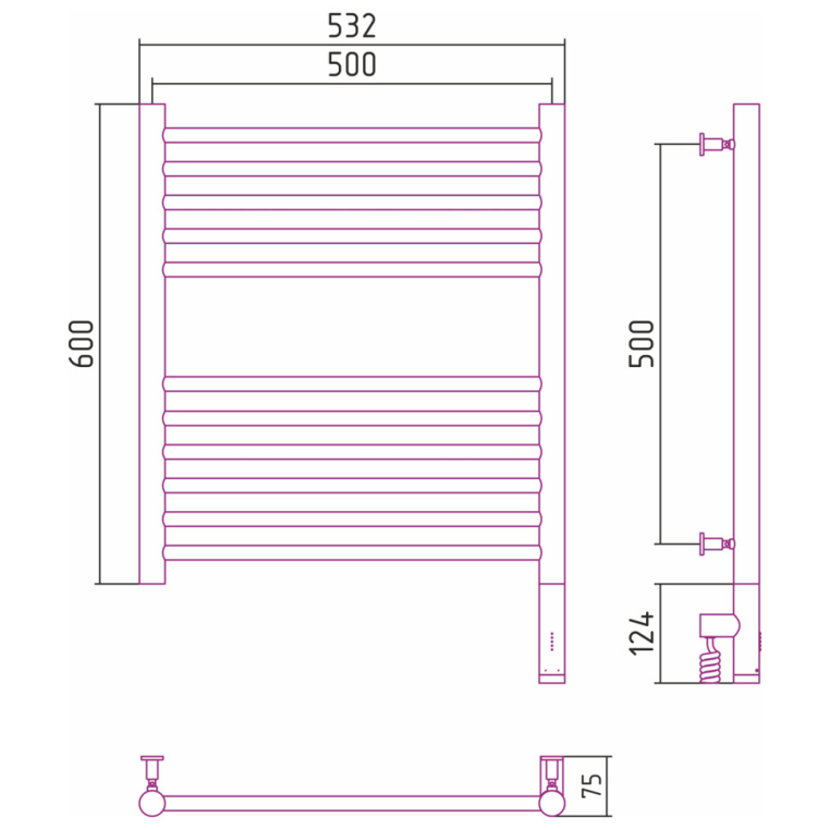 Богема 3.0 — электрический полотенцесушитель из нержавеющей стали, оснащённый многофункциональным блоком управления МЭМ Сунержа.