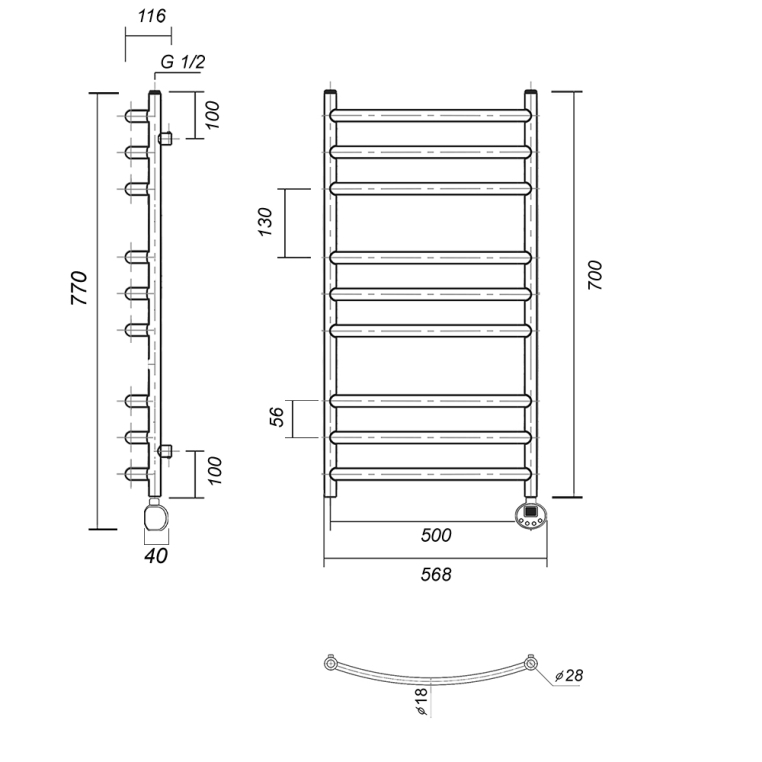 Полотенцесушитель электрический Domoterm Калипсо П9 500х700 Абр ER Тен справа, Античная бронза