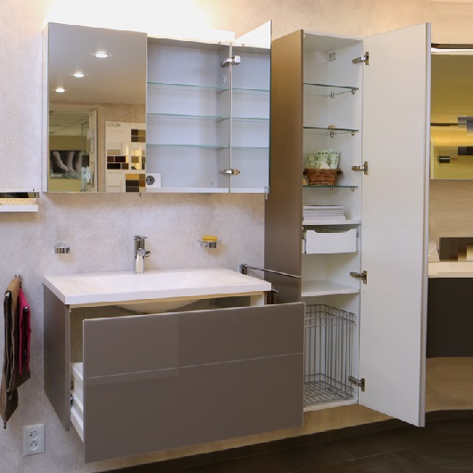 Тумба под раковину Keuco Royal Reflex 34060140000 c механизмом доводчика, обеспечивающим плавное закрывание.
