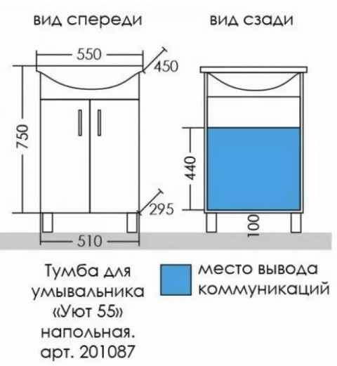 Тумба для умывальника напольная Уют 55 (умывальник Уют 55) с механизмом плавного закрывания (с доводчиками).
