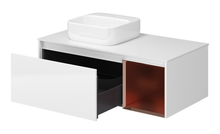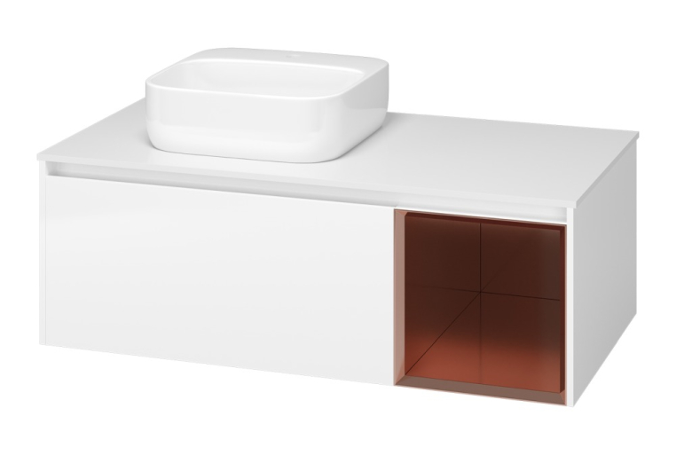 Эффектная комбинация белого глянца с медной эмалью.