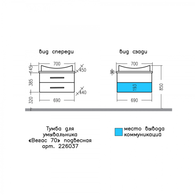 Тумба под раковину СаНта Вегас 70 226037
