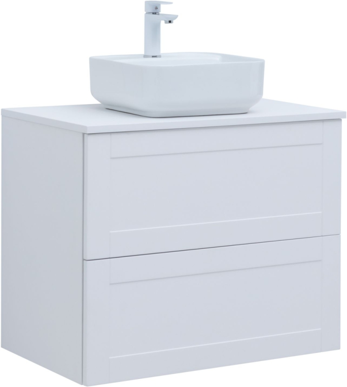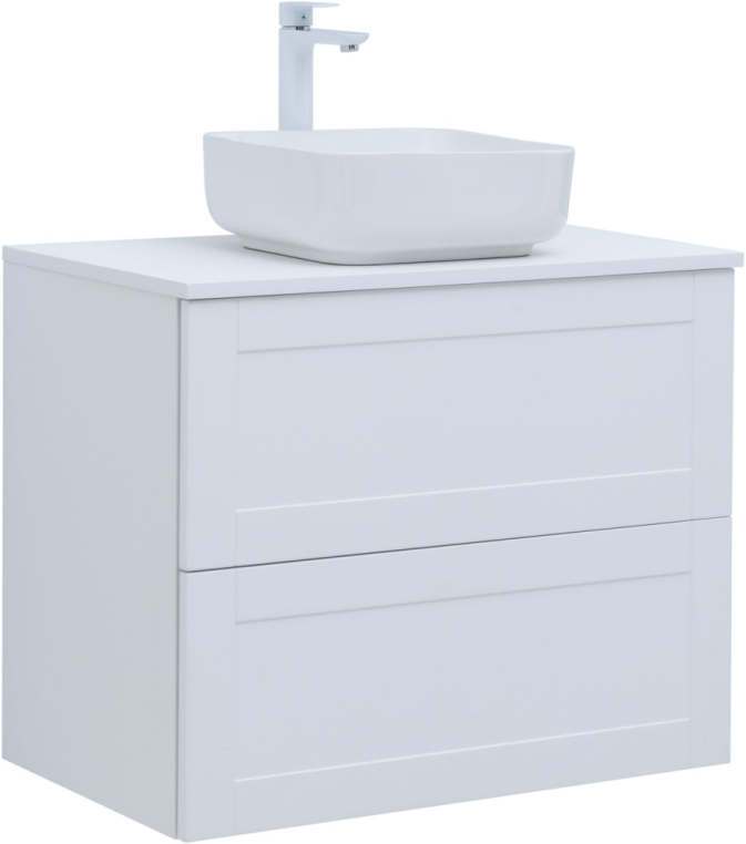 Тумбы комплектуются раковиной Электра 60/70/80/90 (литьевой мрамор) или столешницей Терра (МДФ, толщина 20 мм в пленке ПВХ в цвет тумбы) с накладной раковиной.