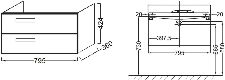 Тумба с раковиной Jacob Delafon Rythmik 80х37 2 ящика белый блестящий лак (EB1302-G1C+EXP112-Z-00)